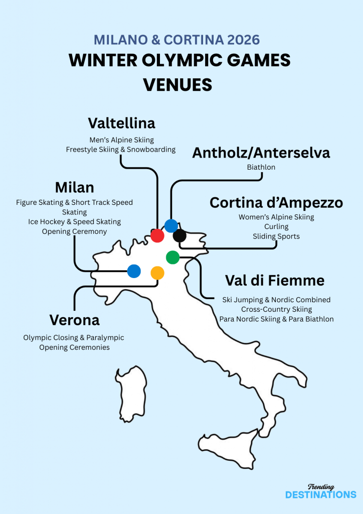 Whether you’re chasing medal moments, planning a city break with a sporting twist, or immersing yourself in Dolomite scenery, this guide has you covered.